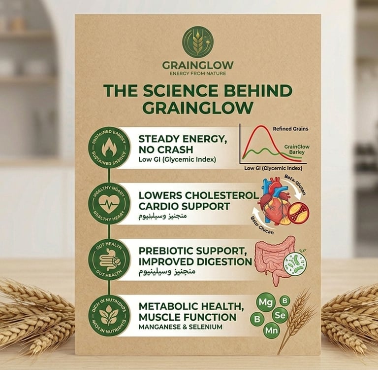 Unlike refined grains that cause a "sugar spike" and sudden crash, our whole grain barley has a Low Glycemic Index (GI).
